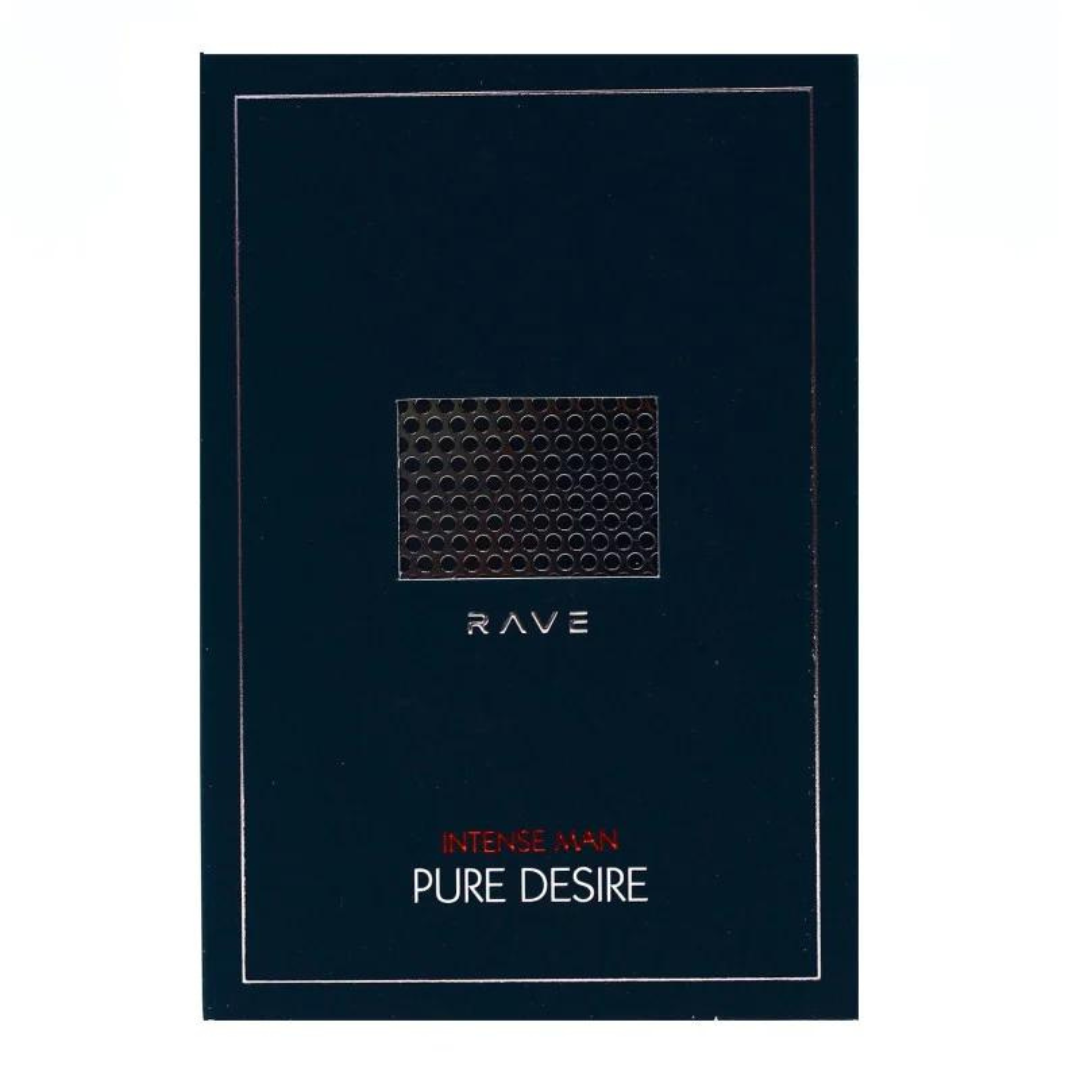 Pure Desire Intense Man parfum arabesc oriental pentru barbati oriental lemnos, intens, puternic si impunator. Creat de RAVE, brand consacrat de parfumuri din Dubai. Apartine impreuna cu VURV, ASDAAF, AL RAHEEB companiei LATTAFA.