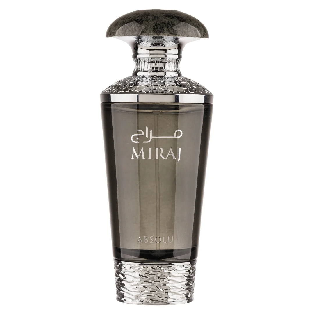 Miraj Absolu de French Avenue este un parfum Aromatic de dama. Acesta este un parfum nou Miraj Absolu a fost lansat in 2024. Notele de varf sunt piper roz, bergamot si mandarina; notele de mijloc sunt muscata, zibeta, trandafir, nufar si gardenie; Notele de baza sunt Lemn de Agar(Oud), note lemnoase, paciuli, lichen, vanilie, piper roz, cafea si ambra.