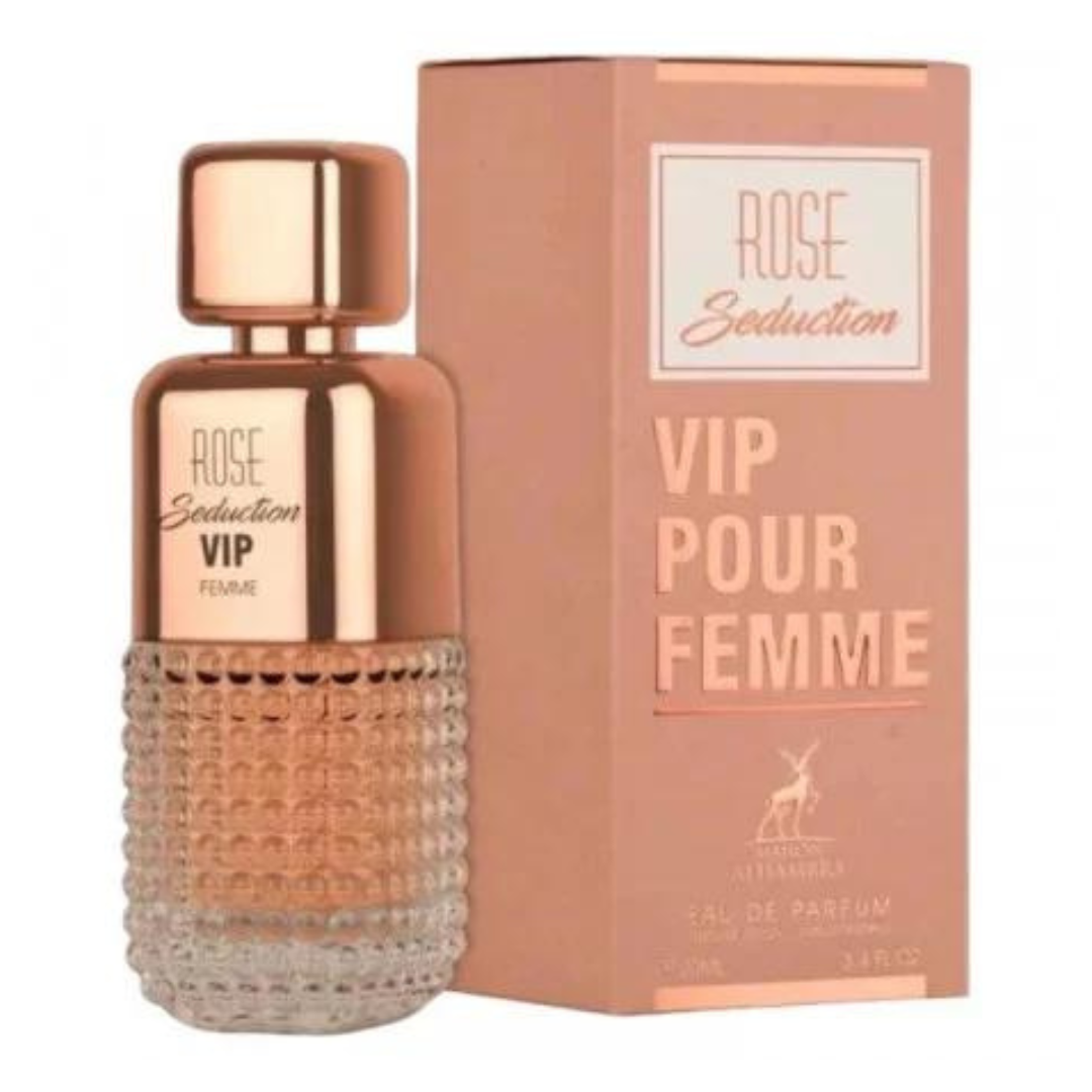 Rose Seduction VIP parfum arabesc feminin creat de catre Maison Alhambra. Astazi, apartinand impreuna cu RAVE, ASDAAF, AL RAHEEB companiei LATTAFA PERFUMES, una dintre cele mai prestigioase companii producatoare de parfumuri si produse cosmetice din Emiratele Arabe Unite.